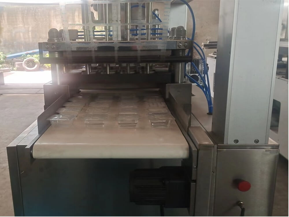 →Film Unrolling → Plastic molding → Adding materials → Heat sealing → Ink-jet marking → Product cutting → Finished product output → Waste material winding